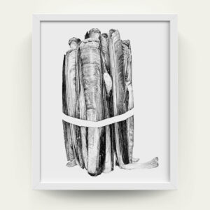 Fruits coupés fait partie d’une série de dessins basés sur des photos de cuisines de famille.