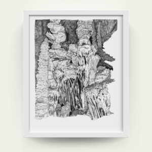 La Grotte est une œuvre dont la réalisation fut lente et minutieuse, entièrement composées de points et réalisée sur un format A3.