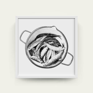 Les sardines est une œuvre dont la réalisation fut lente et minutieuse, entièrement composées de points avec une mine de 0,01mm de diamètre et réalisée sur un format 30 x30 cm.