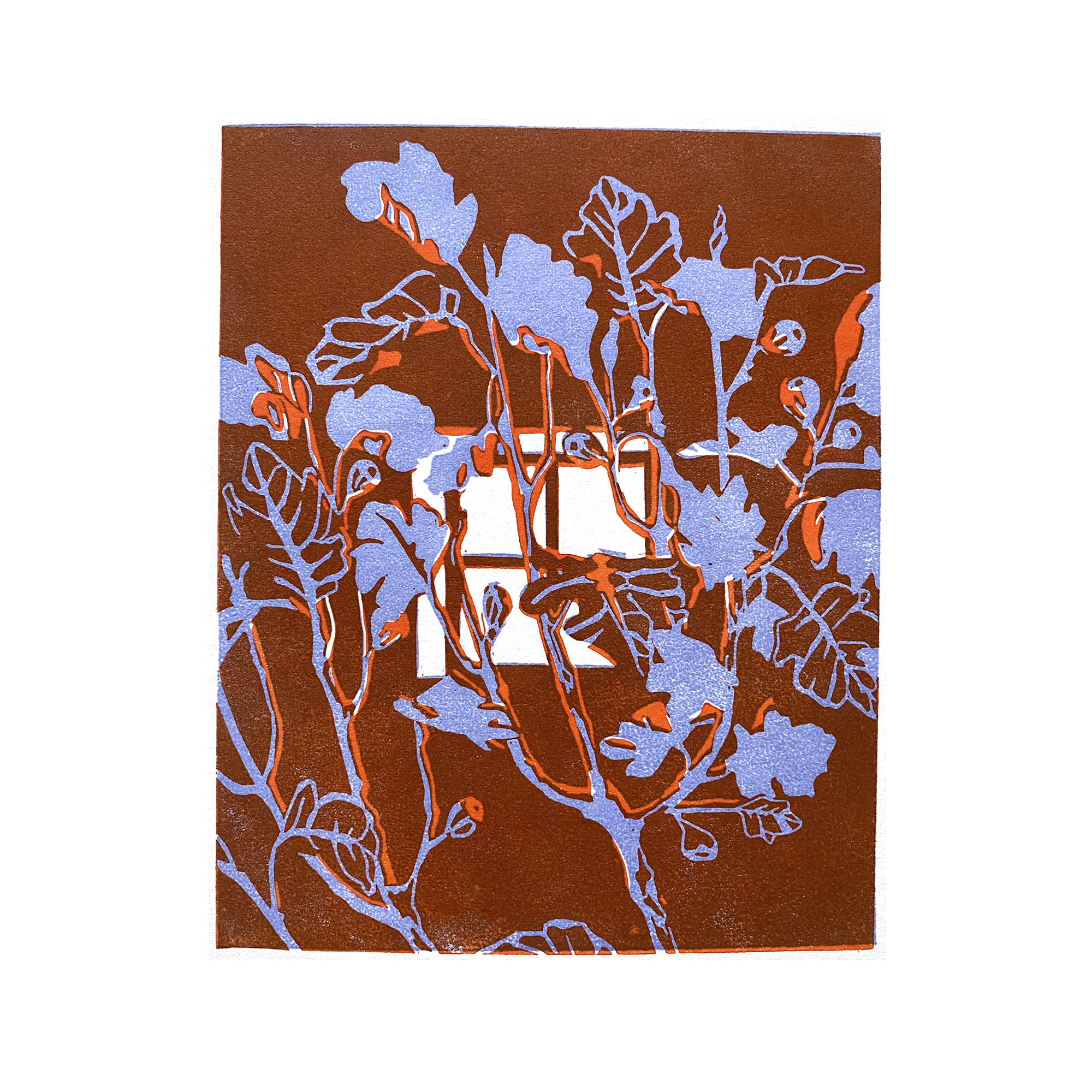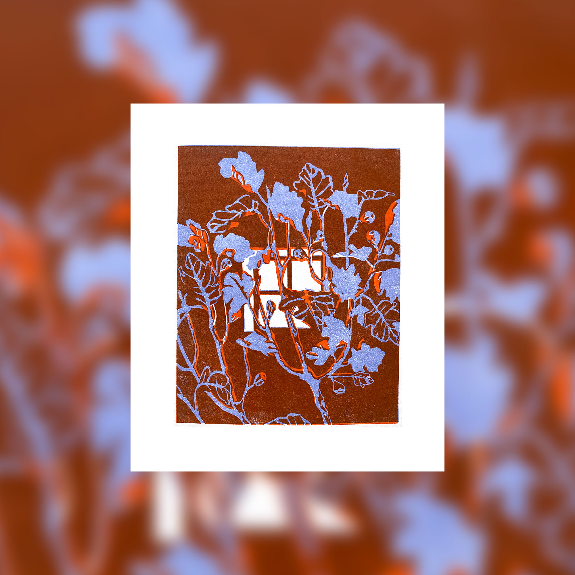 Linogravure sur papier Arches, impression manuelle 2 couleurs format 18 x 24 cm | 2025