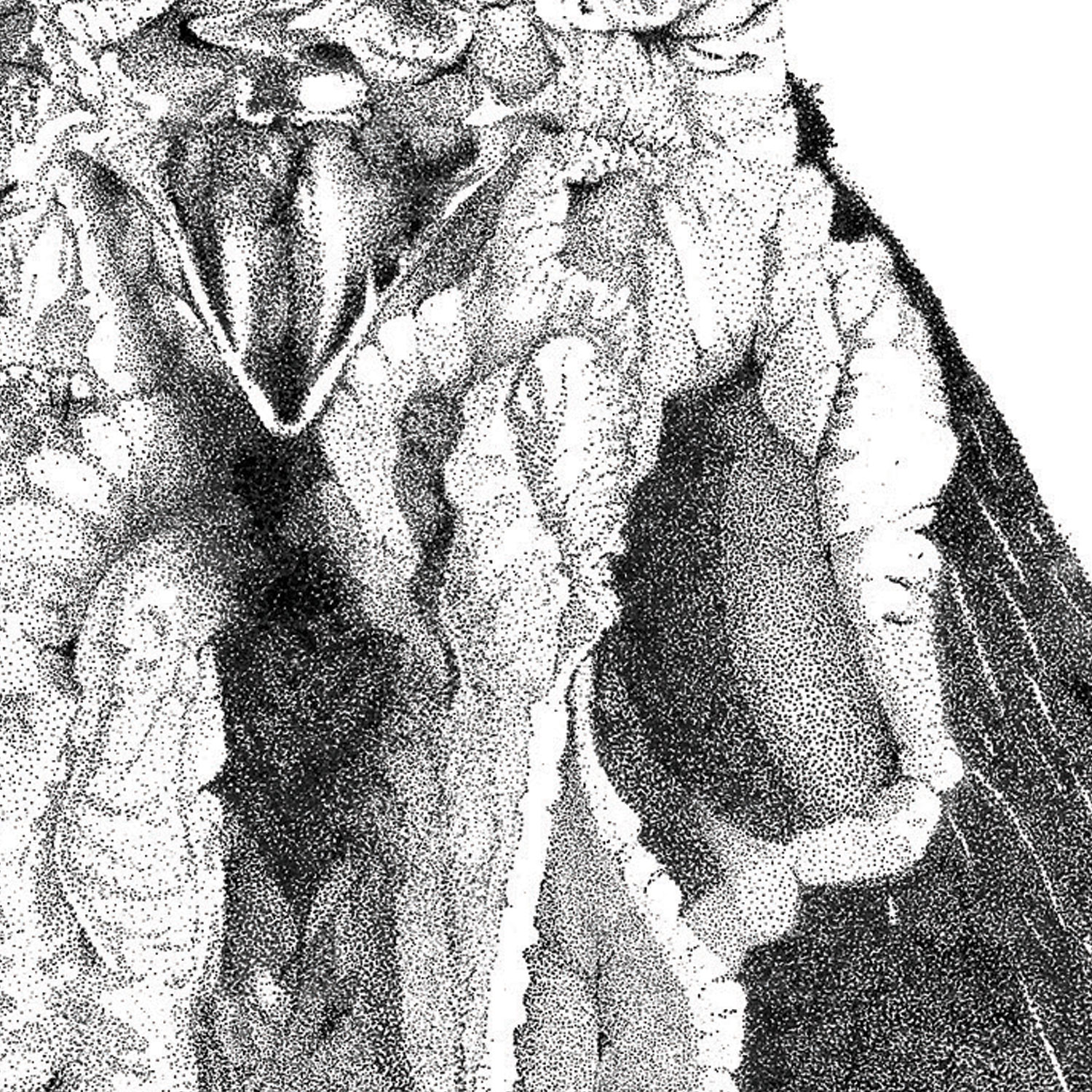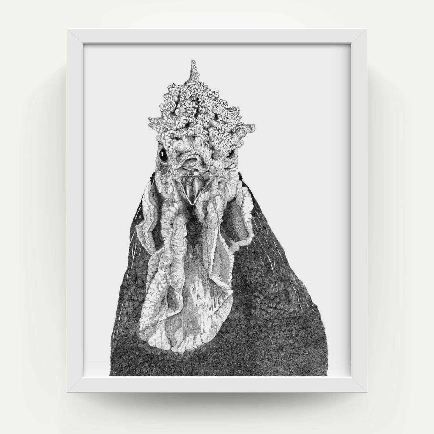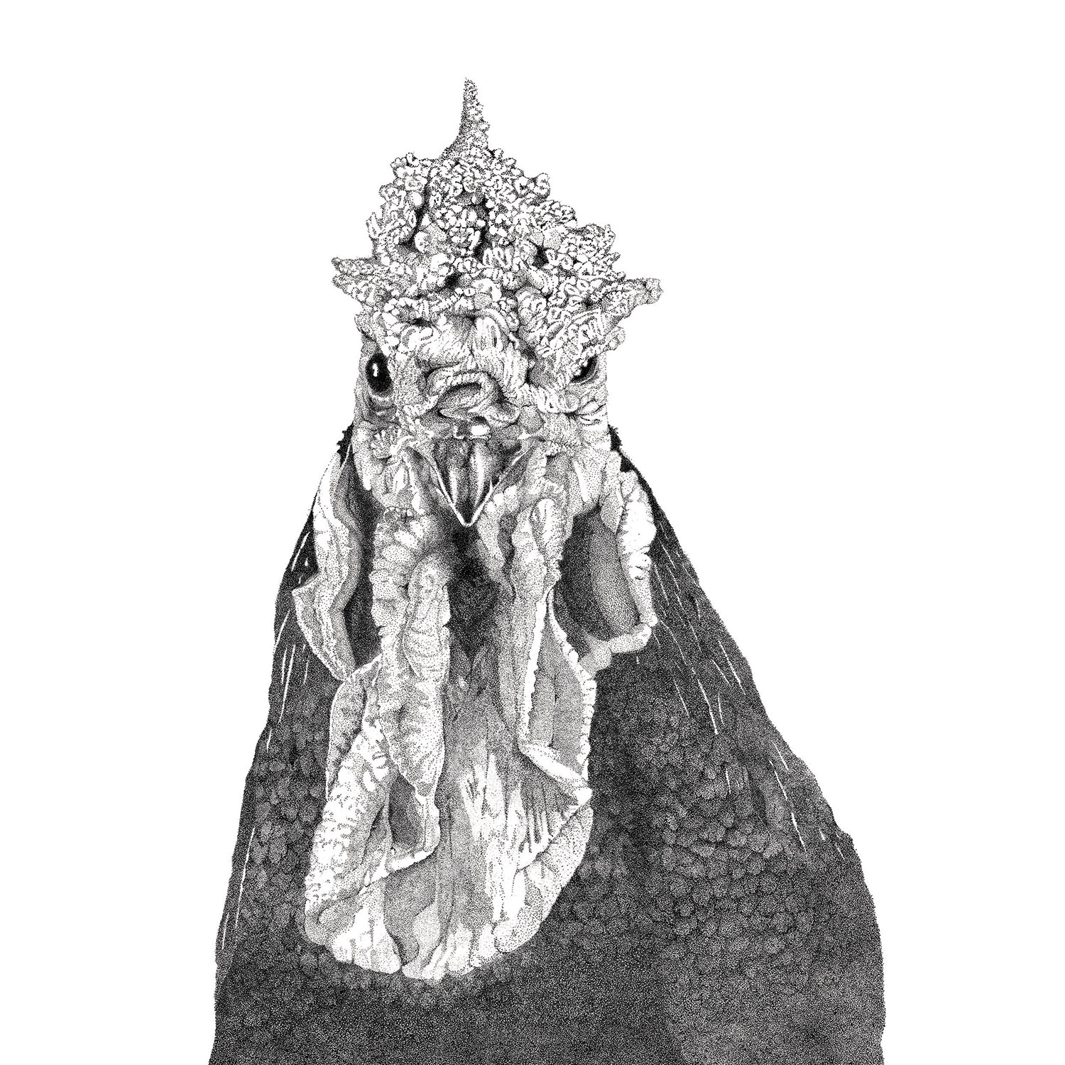La poule est une œuvre dont la réalisation fut lente et minutieuse, entièrement composées de points réalisée sur un format A3.