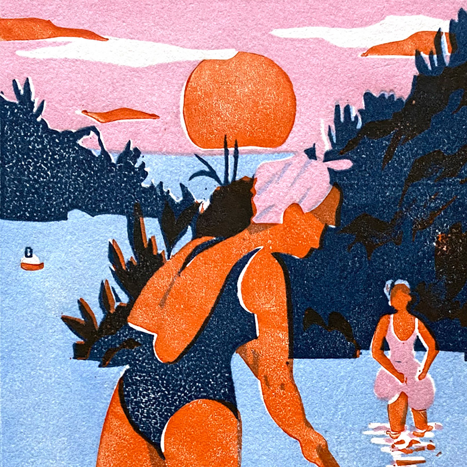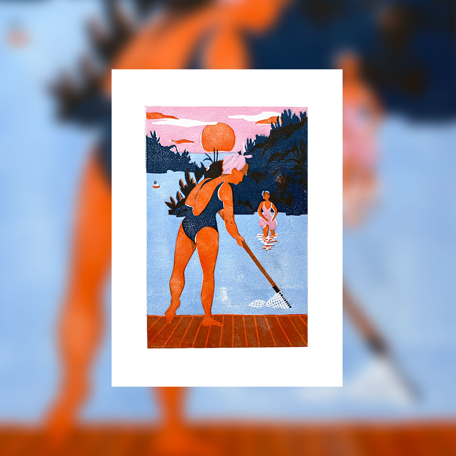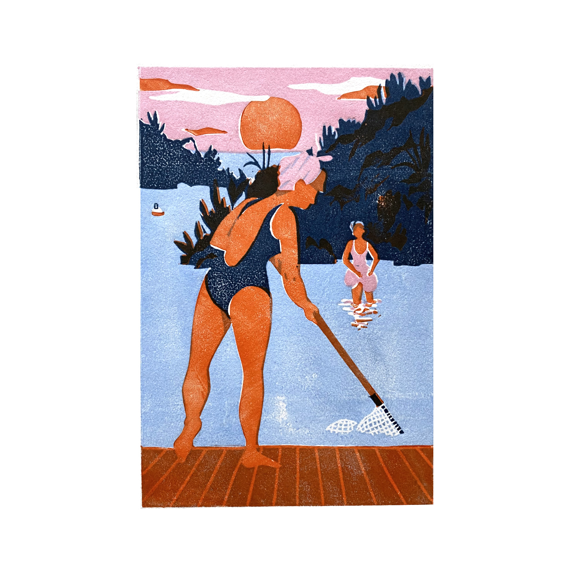 Linogravure sur papier Arches, impression manuelle 4 couleurs format 18 x 24 cm | 2025