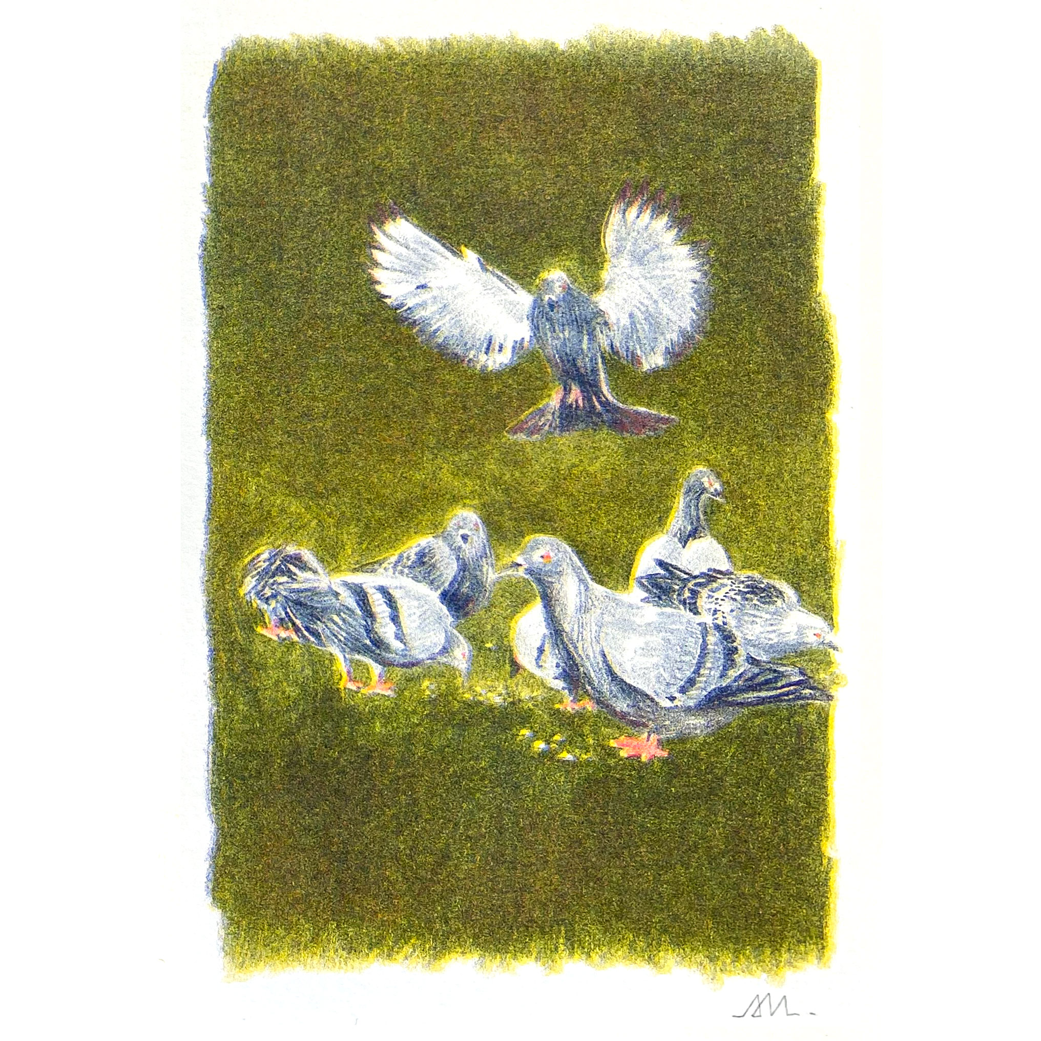 Ce procédé d’impression en plusieurs passages donne un grain à l’image et une vibration au dessin. Chaque exemplaire peut présenter de légers décalages dû aux différentes passes.